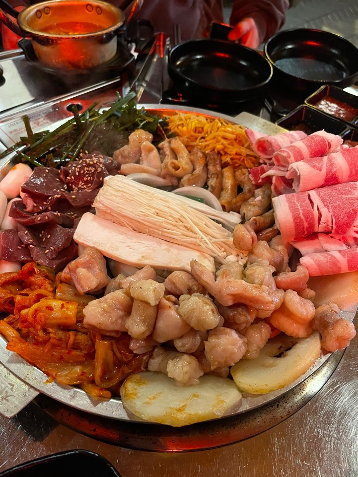 진수성찬입니다!!! 저는 기름기 좔좔 흐르는 대창 참 좋아해요!! 요즘 sns에서 핫한 음식 중 하나더라구요??!!! 염통, 막창, 곱창, 우삼겹 할 것 없이 너무 맛있구요!!! 주변에 보이는 감자, 치즈떡, 부추 모두 잘 어울리는 한 상 요리와 같은 느낌이예요!!! 소스에 찍어 한 입 먹고 소주던지 맥주던지 딱 한 잔 들이키면!! 캬~~~~
