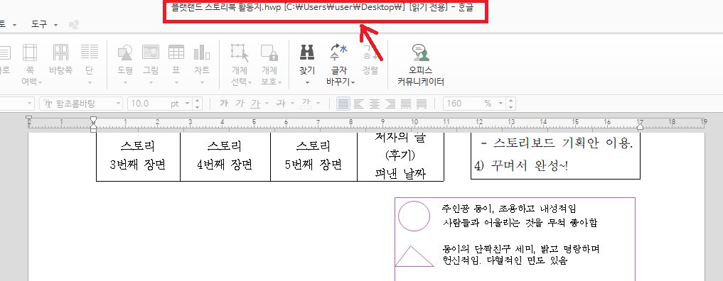 이렇게 다시 한글 문서 파일을 열었을 때 제목 부분에 “읽기 전용”이라는 문구가 없어지고 편집이 가능한 것을 확인할 수 있습니다.