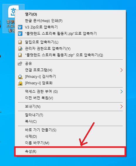 일단 읽기전용 해제하고 싶은 파일을 닫아두고 해당 한글 파일 아이콘에서 오른쪽 마우스를 클릭한 다음 제일 밑에 있는 <속성> 버튼을 클릭해 주세요..