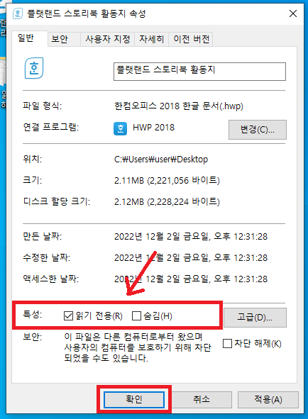 한글 읽기전용 해제 방법