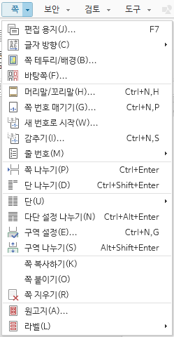 단축키로 한글 쪽 번호 매기기