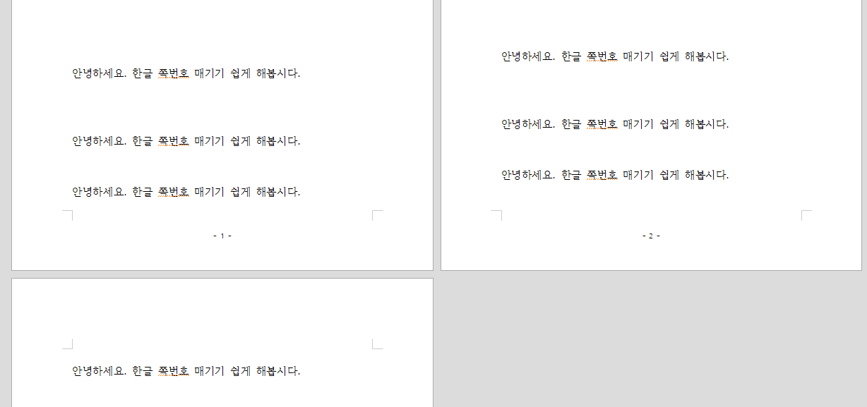 그럼 사진과 같이 쪽번호가 매겨진 것을 확인할 수 있습니다.