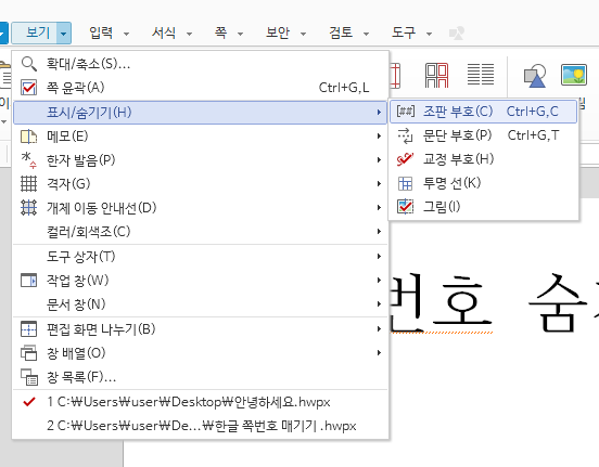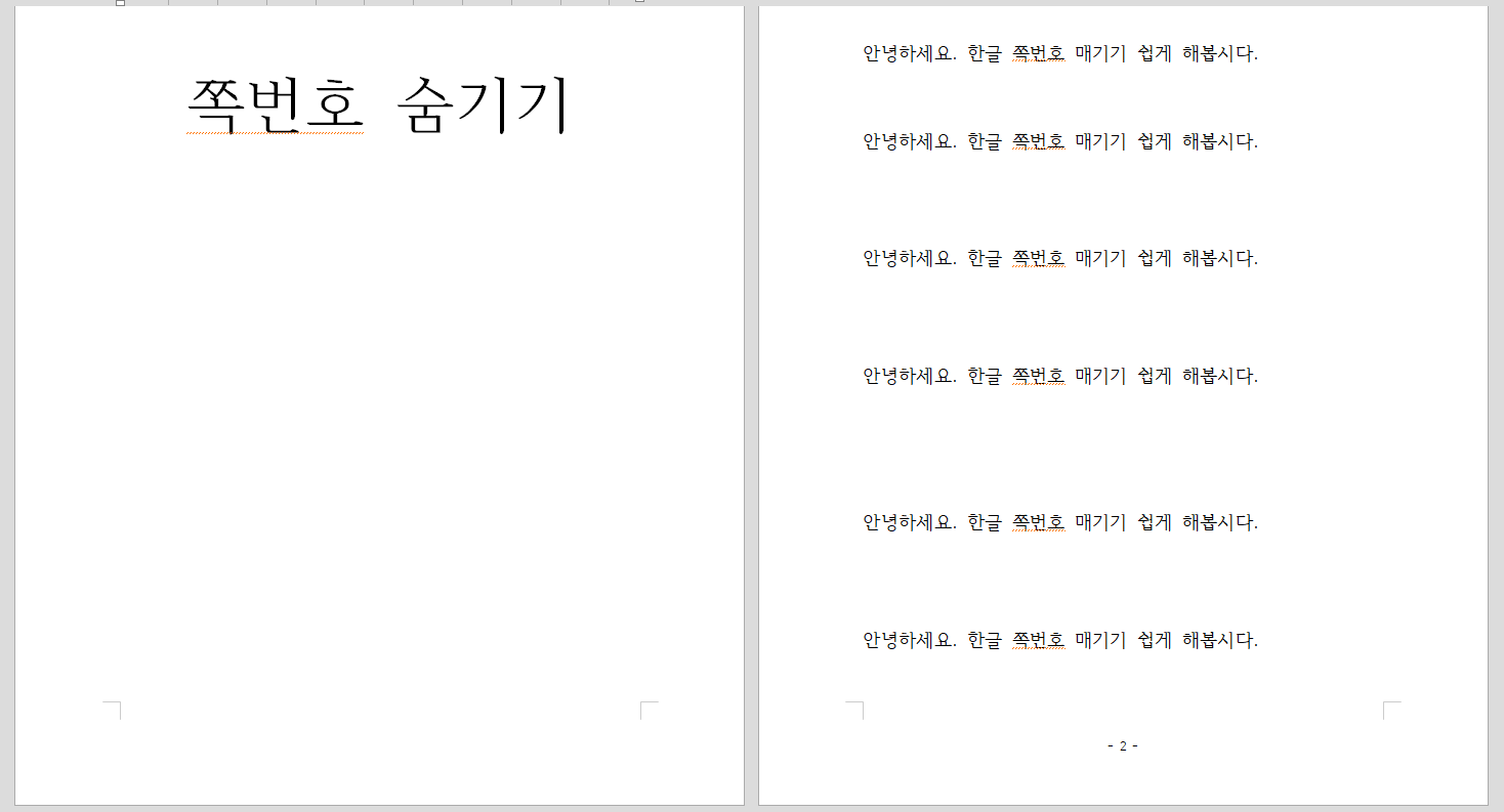 2. 한글 쪽 번호 감추기