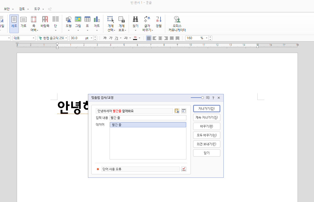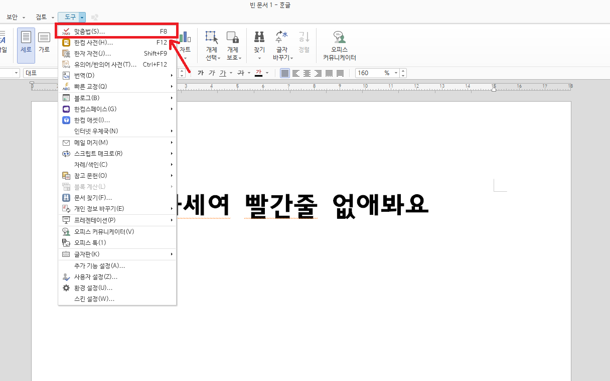 한글 빨간 줄 없애기 맞춤법 검사