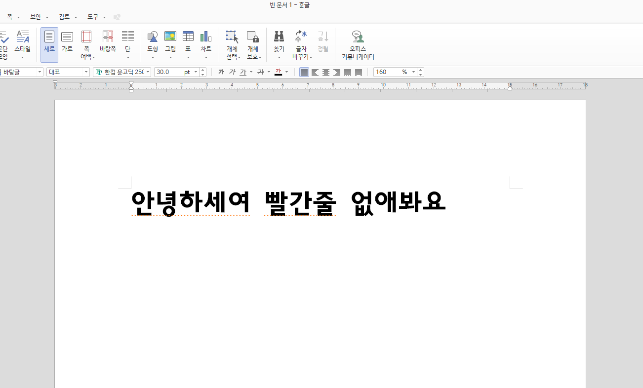 한글에서 빨간 줄이 표시될 때는 바로 위와 같이 맞춤법이 틀렸을 때입니다. 따라서 틀린 맞춤법을 수정하면 빨간 줄은 없어지게 됩니다.