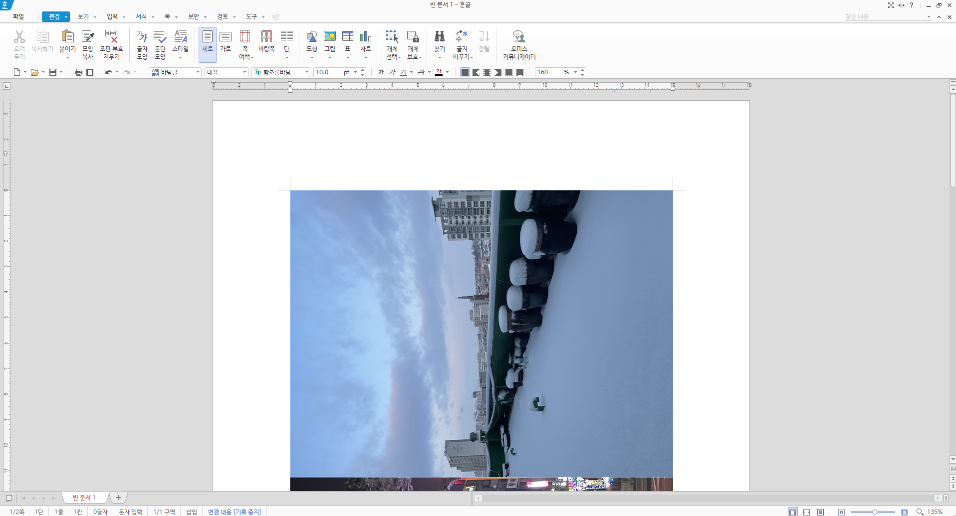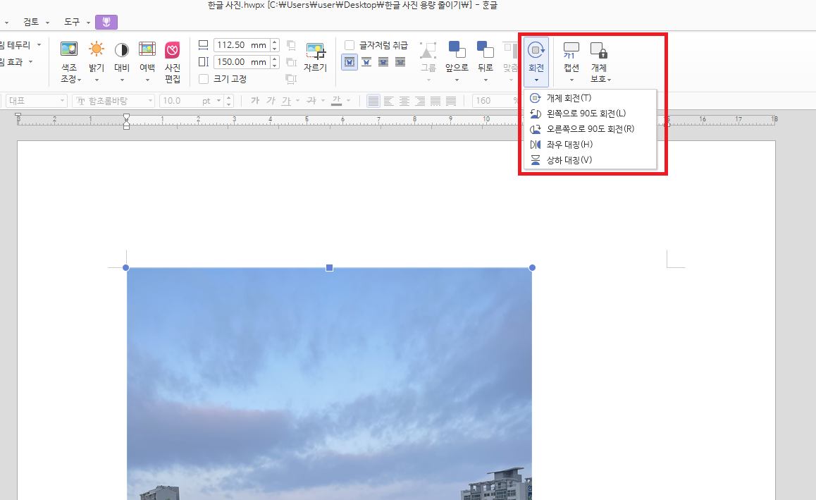 한글 사진 넣기를 하고 나면 사진이 눕혀있는 경우도 많죠. 한글 사진 넣기를 한 후에도 한글 사진 회전이 가능합니다.