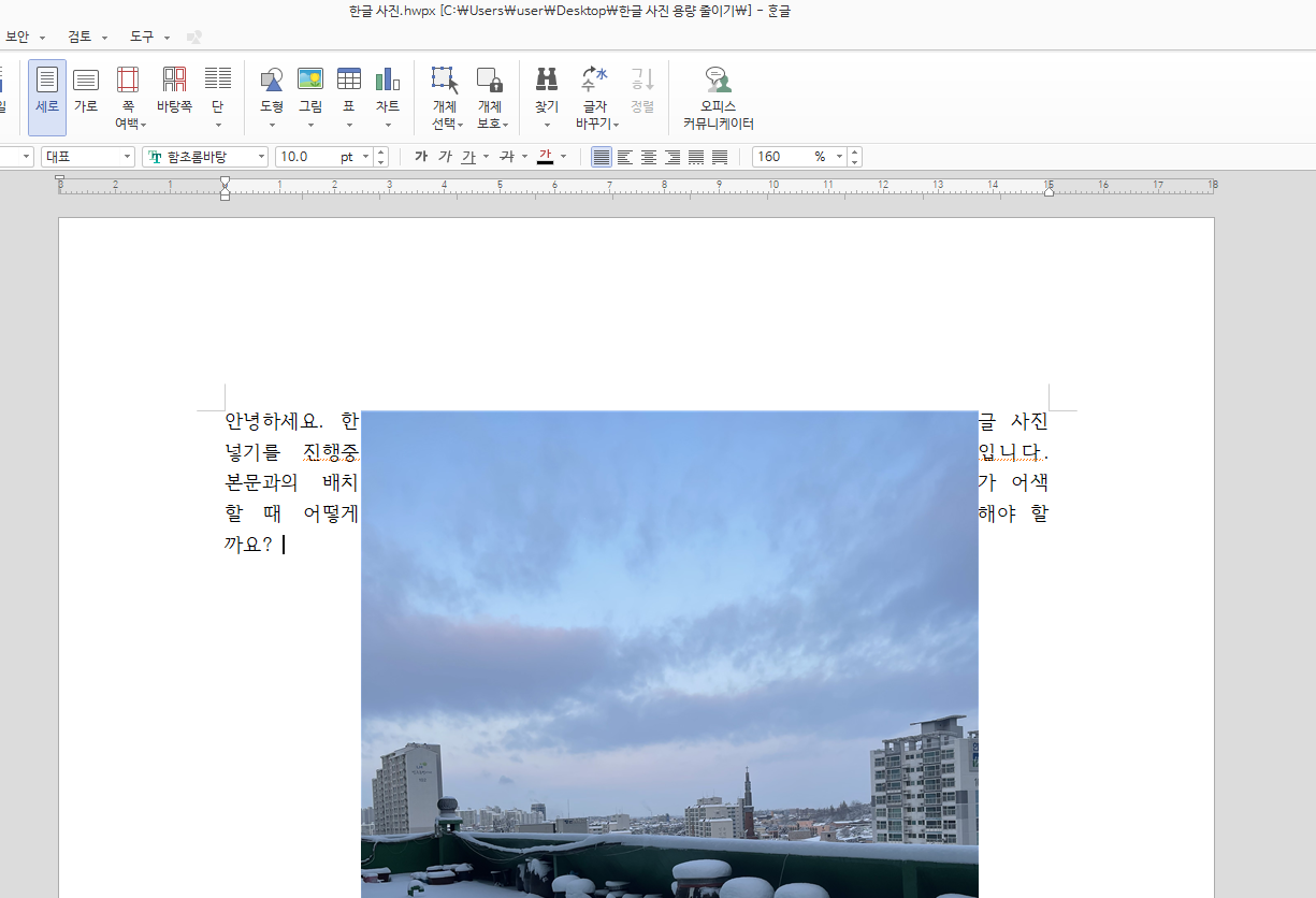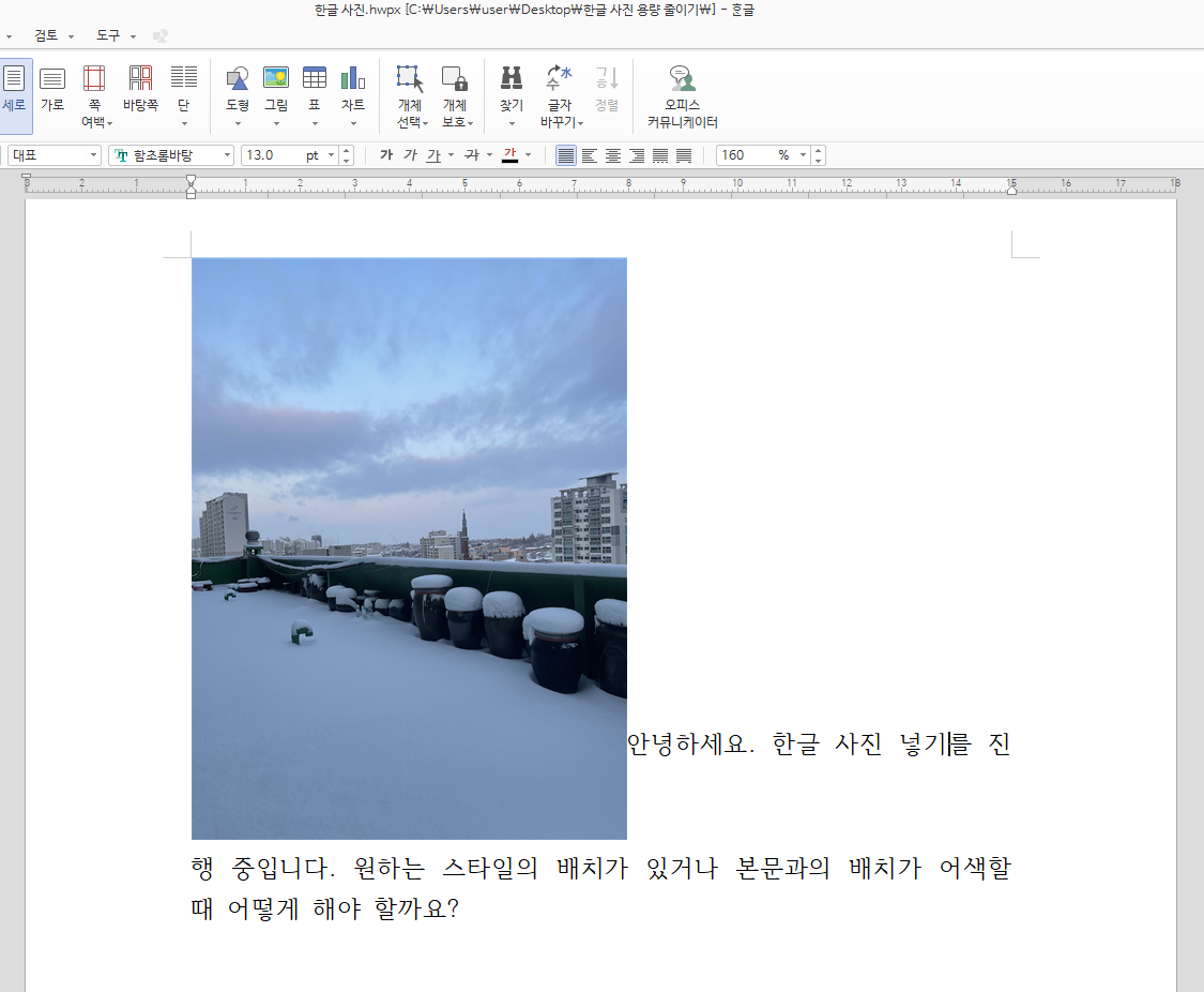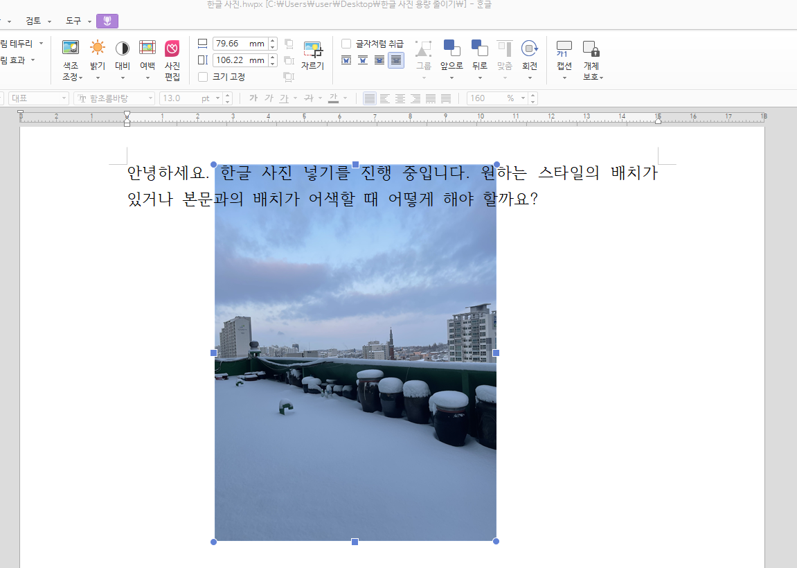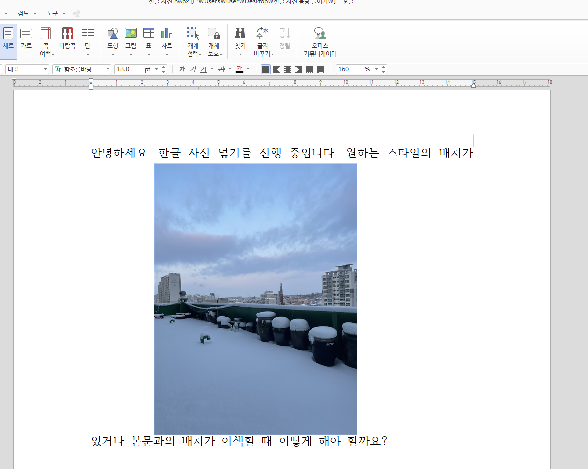 이제 우리는 원하는 바에 따라 한글 사진 넣기를 하고 조절할 수 있게 되었습니다.