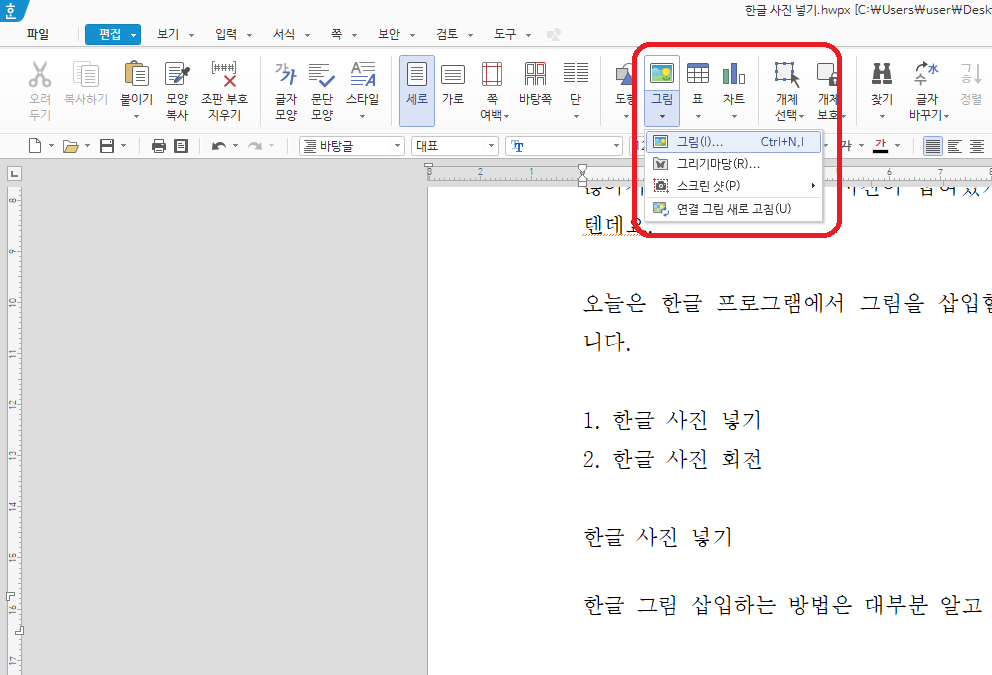 1. 한글 사진 넣기