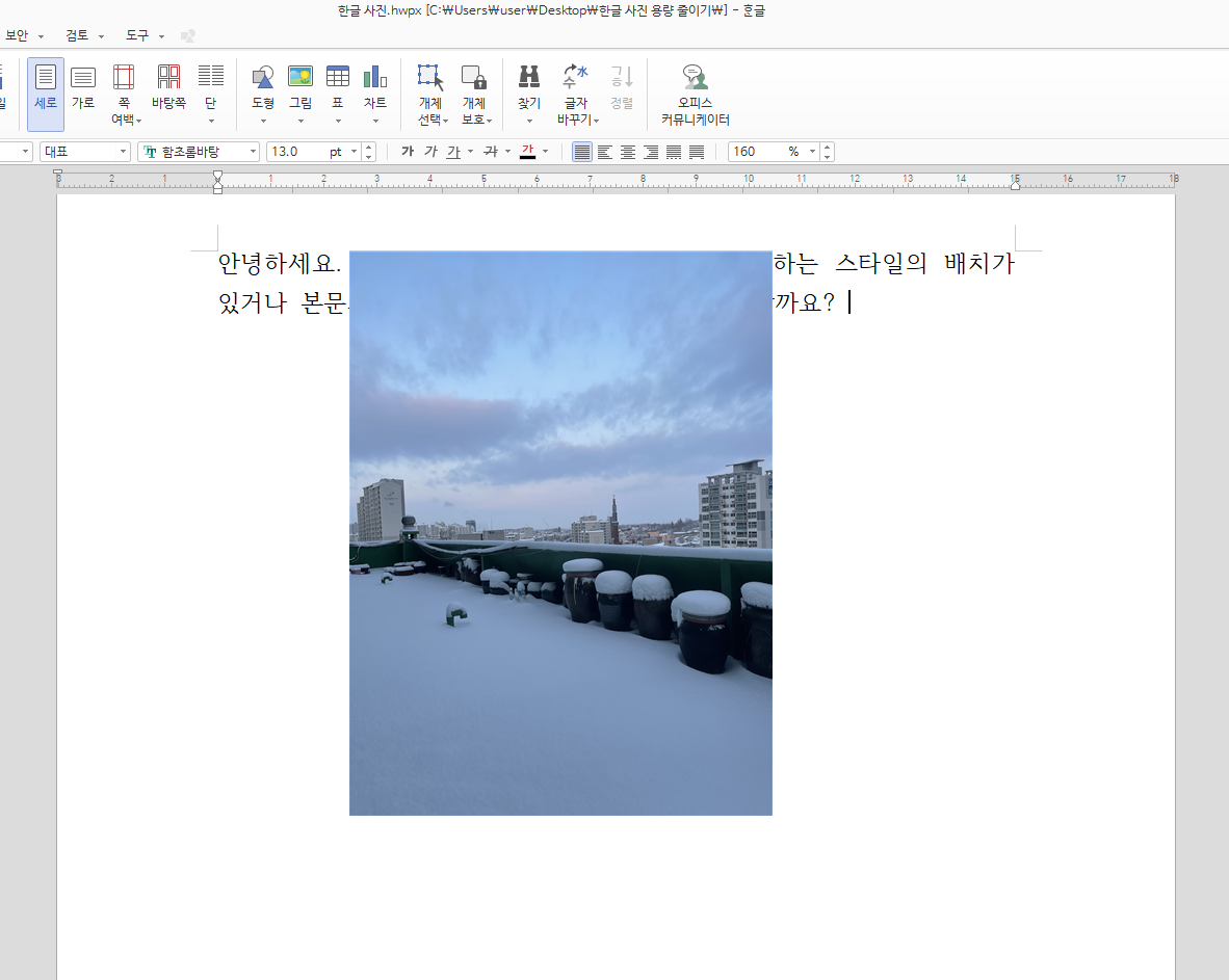 이제 우리는 원하는 바에 따라 한글 사진 넣기를 하고 조절할 수 있게 되었습니다.