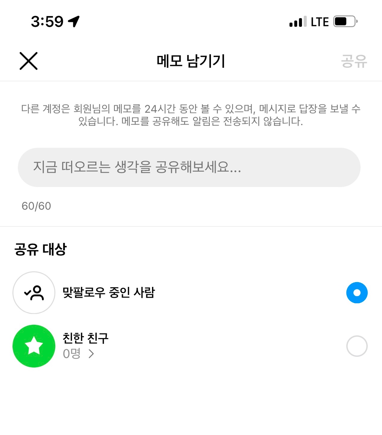 인스타 메모 작성하기