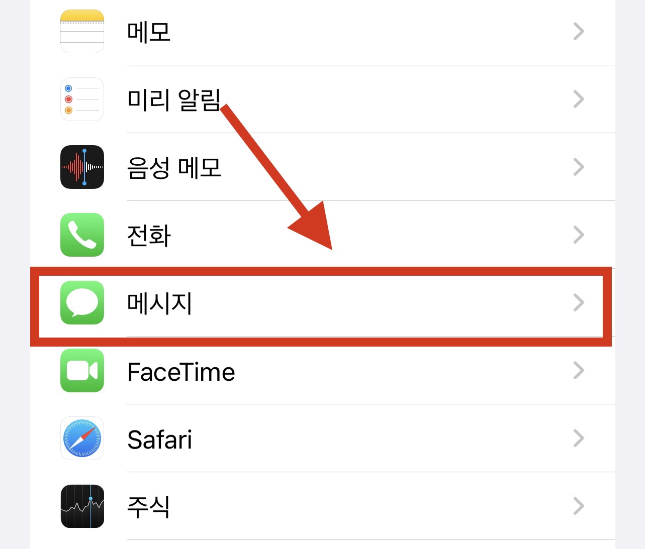아이폰의 설정 앱에 들어간 후 <메시지> 항목을 찾아 눌러줍니다.