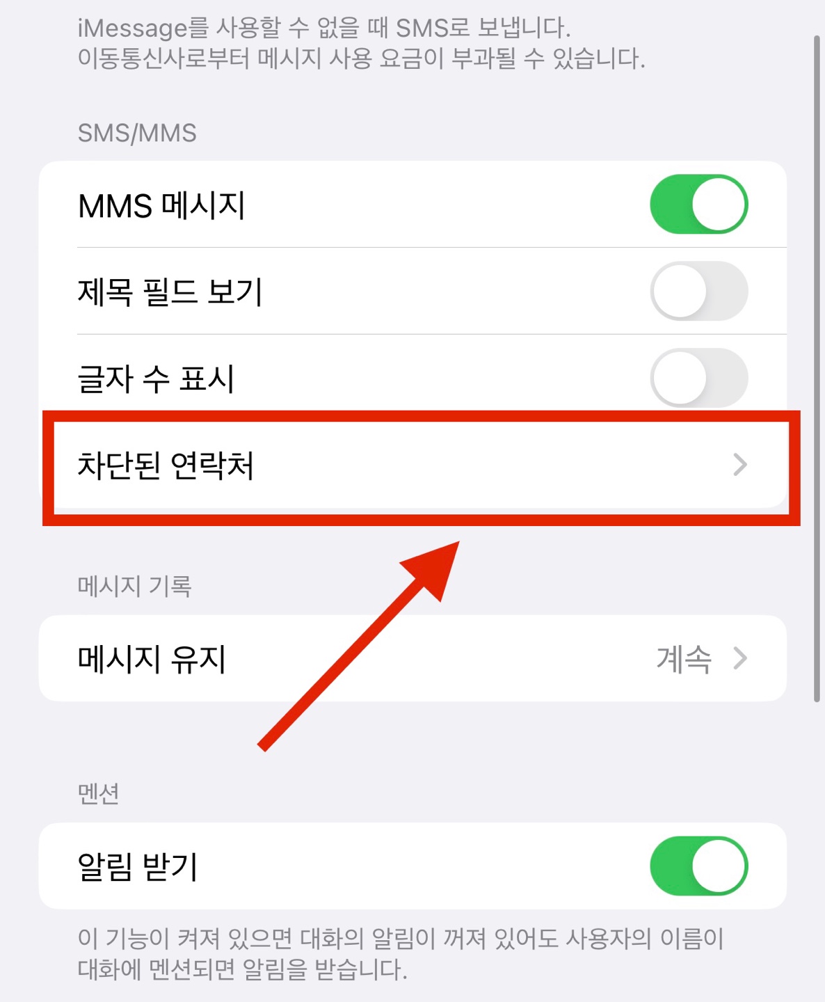 두 번째 방법은 아이폰 스팸 문자 차단 확인을 하면서 진행할 수 있는데요.