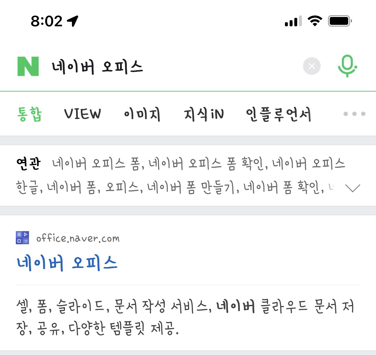 모바일과 PC는 같은 방법으로 진행되니 참고해 주시기 바랍니다. 일단 검색창에 “네이버 오피스”라고 검색합니다.