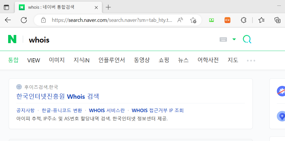 ip 주소 추적하는 방법인데요. 검색창에 ‘whois’를 입력하고 '한국인터넷진흥원 Whois 검색'을 눌러줍니다.