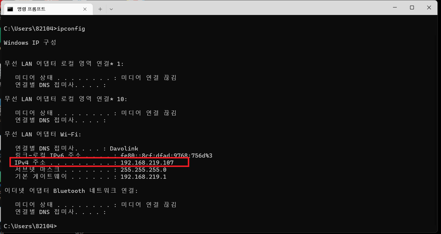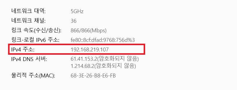 IPv4 주소: 192.168.219.107