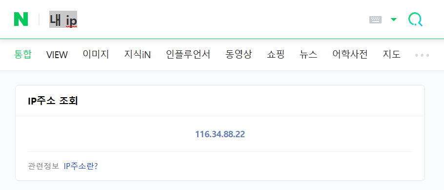 세 번째 ip 확인 방법은 검색창에 내 ip 라고 입력해서 볼 수 있습니다. 자세히 보시면 위에서 조회한 아이피와 다른데요. 앞서 확인했던 두 가지 방법은 공유기를 통한 내부 네트워크는 사설이고요. 이 검색창에서 조회한 ip 주소는 외부와 통신할 때 사용하는 공인 아이피이기 때문입니다. 따라서 인터넷에 접속해서 하는 모든 활동 기록은 지금 보이는 ip 주소로 로그가 남습니다.