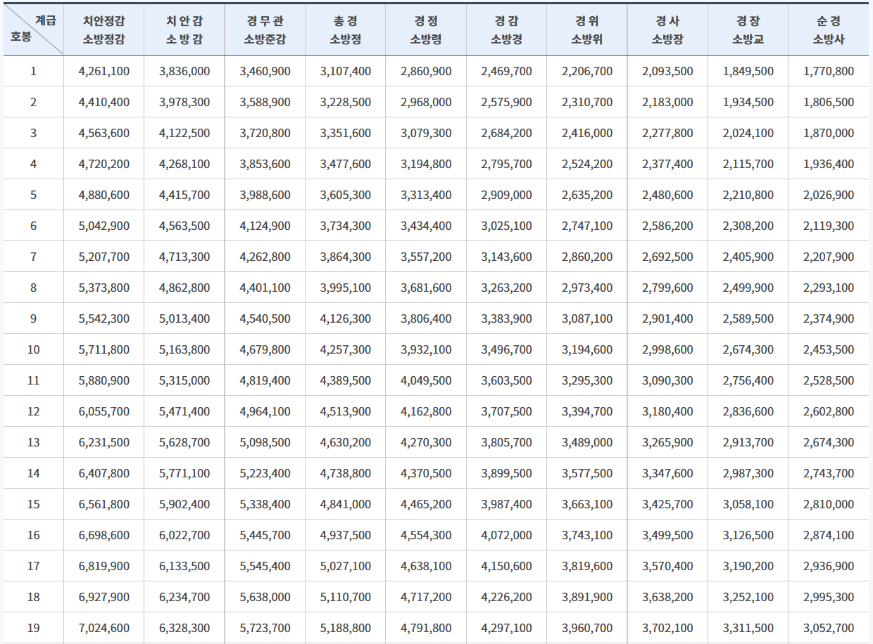 2023년 소방공무원 봉급표 경찰 소방 월급은