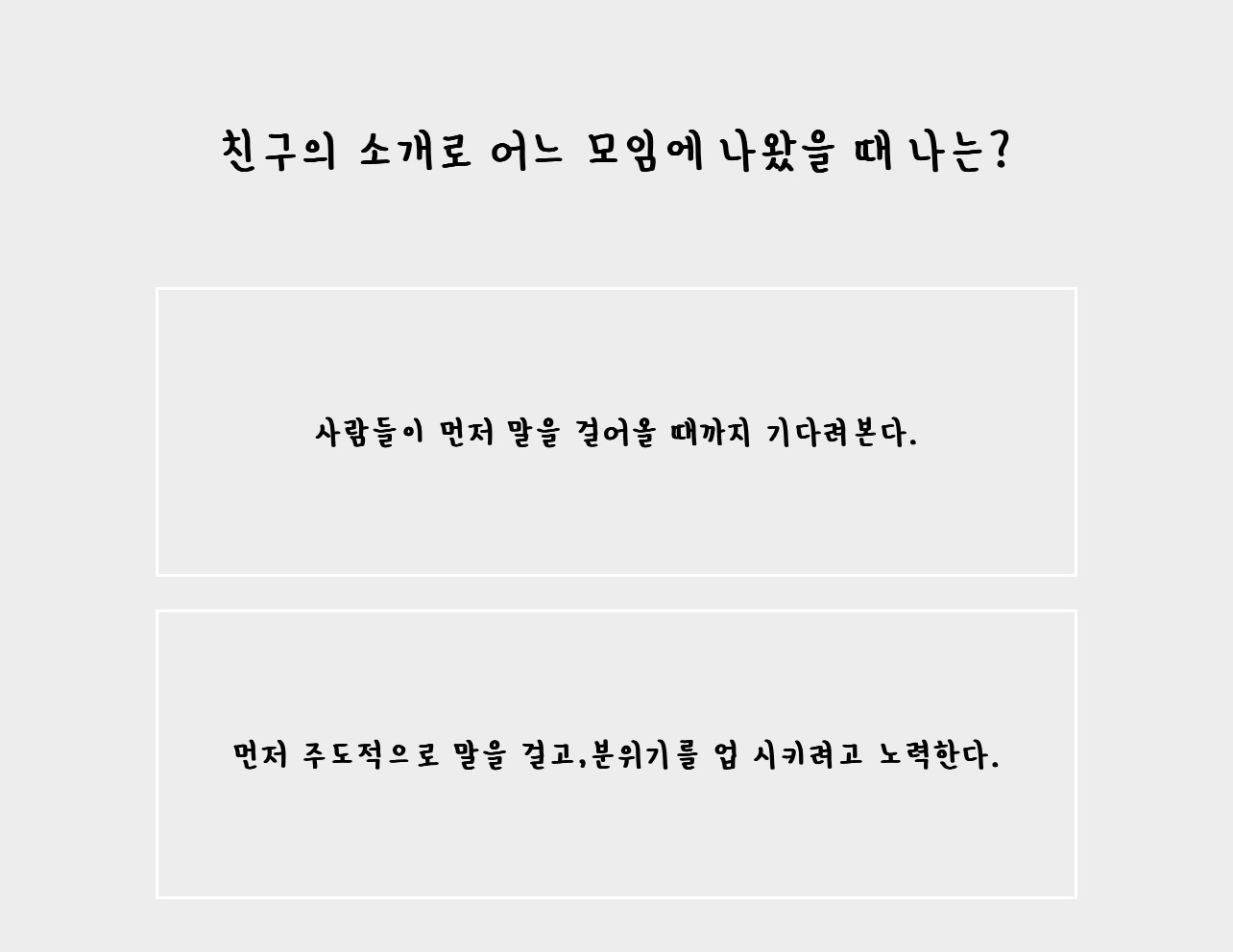 세 번째는 친구의 소개로 어느 모임에 나왔을 때 나는?’입니다.