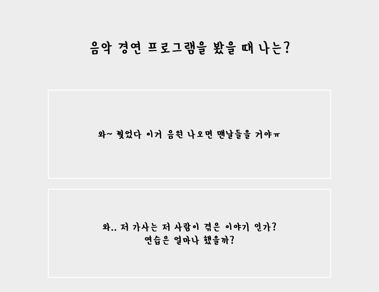 여섯 번째는 '음악 경연 프로그램을 봤을 때 나는?'입니다.
