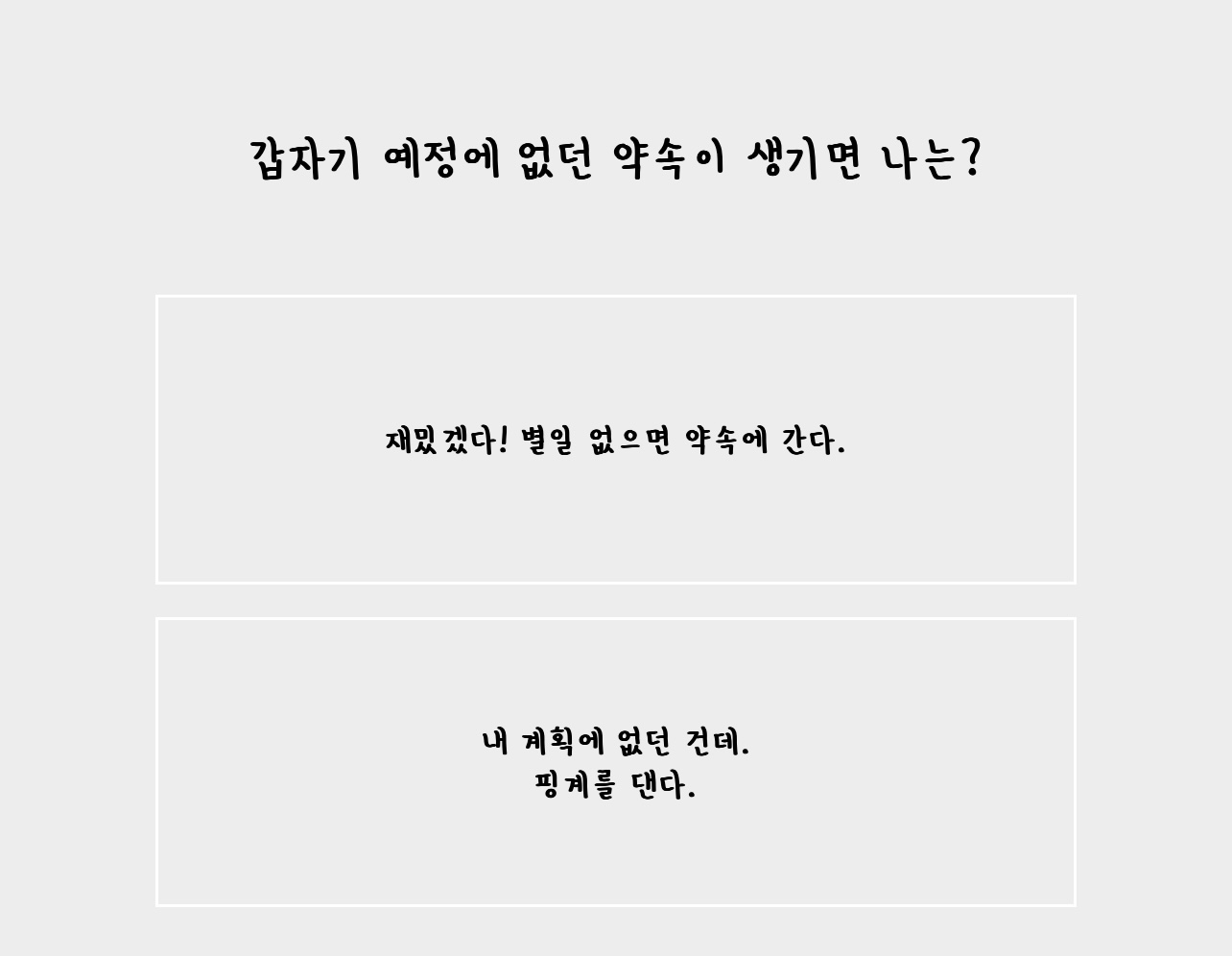 두번째는 '갑자기 예정에 없던 약속이 생기면 나는?'입니다.