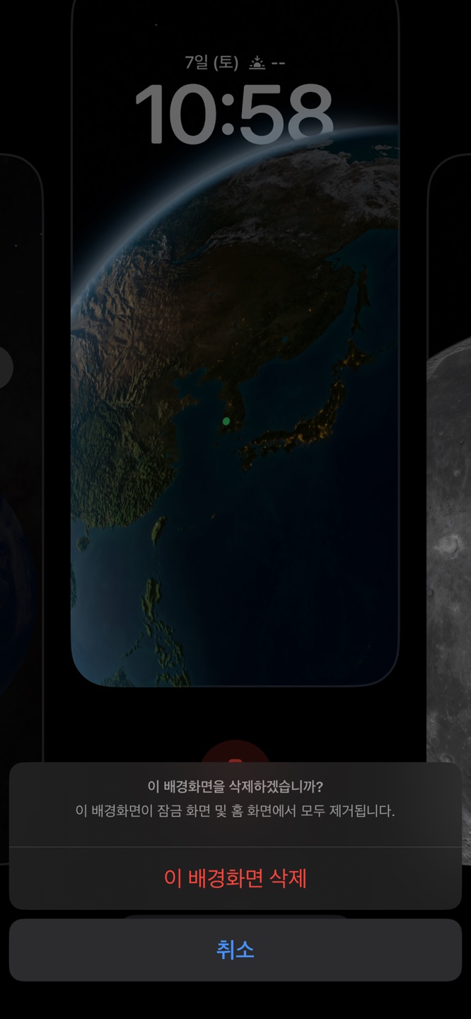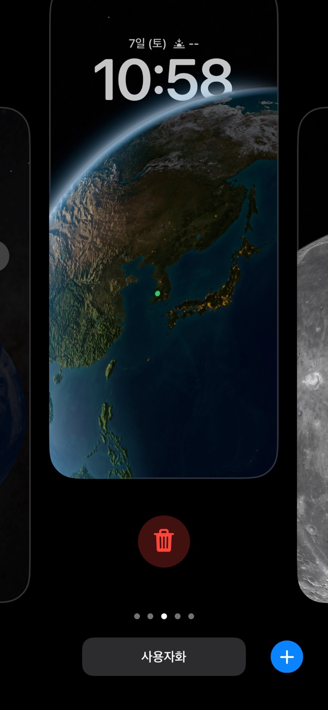 먼저 아이폰 배경 화면 삭제를 위해서는 잠금화면을 `길게 눌러주세요. 그럼 수정 가능한 사용자화 상태로 변환됩니다. 이 상태에서는 설정한 모든 바탕 화면을 수정할 수도 있고 새로 추가할 수도 있습니다. 이제 좌우로 옮겨가며 지우고 싶은 배경 화면을 찾아주고 삭제하고 싶은 배경 화면이 나오면 사진을 위로 끌어올려 줍니다.