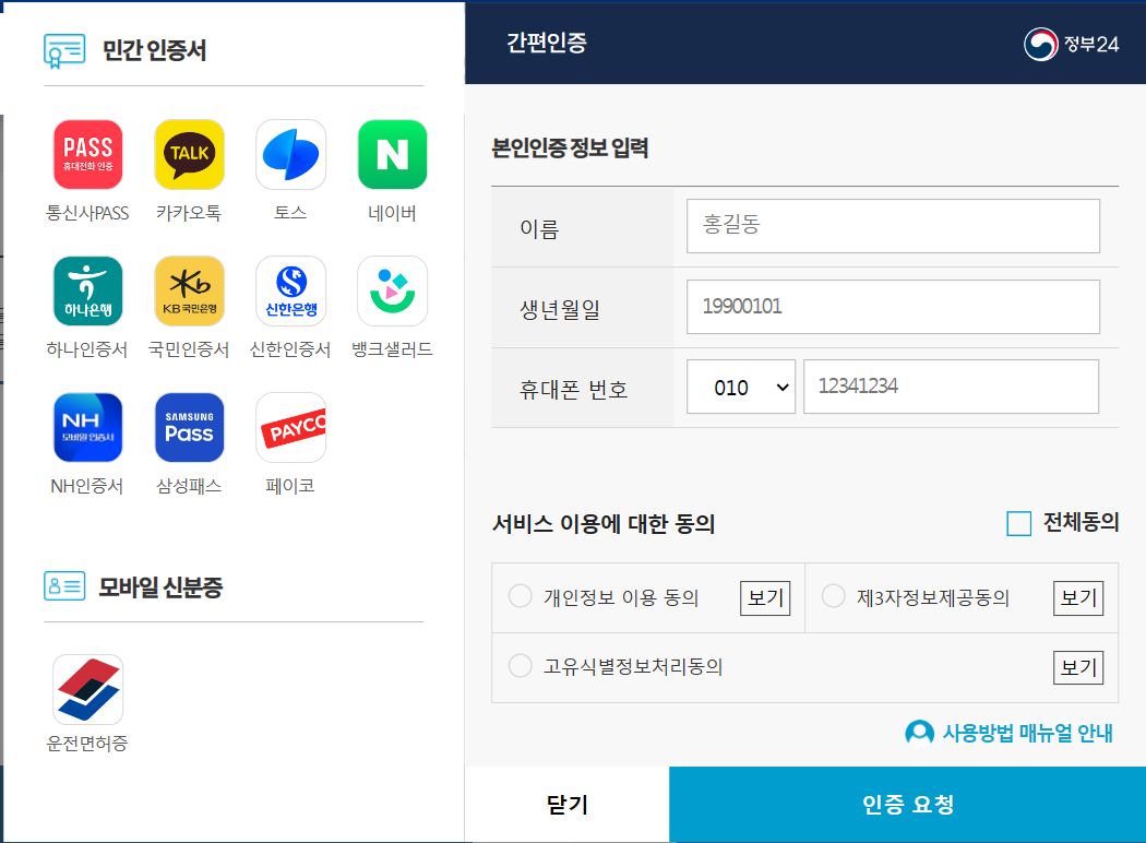 정부 24 본인인증
