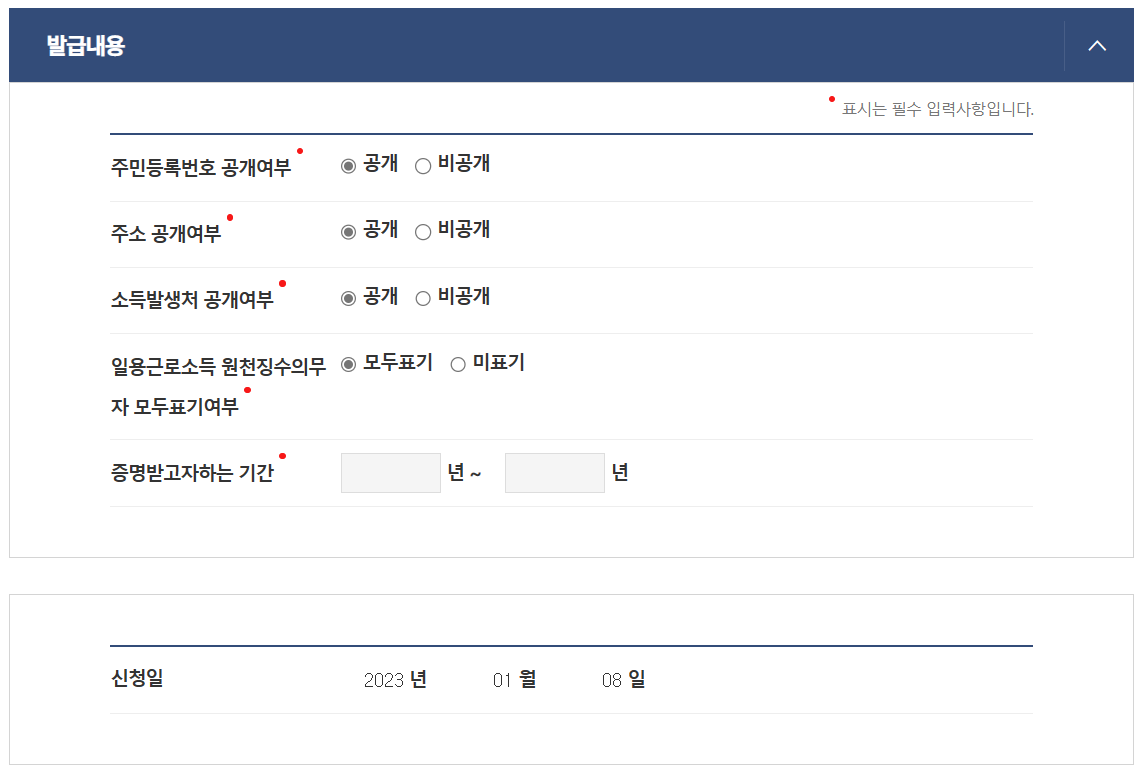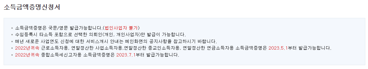 소득금액증명 유의사항