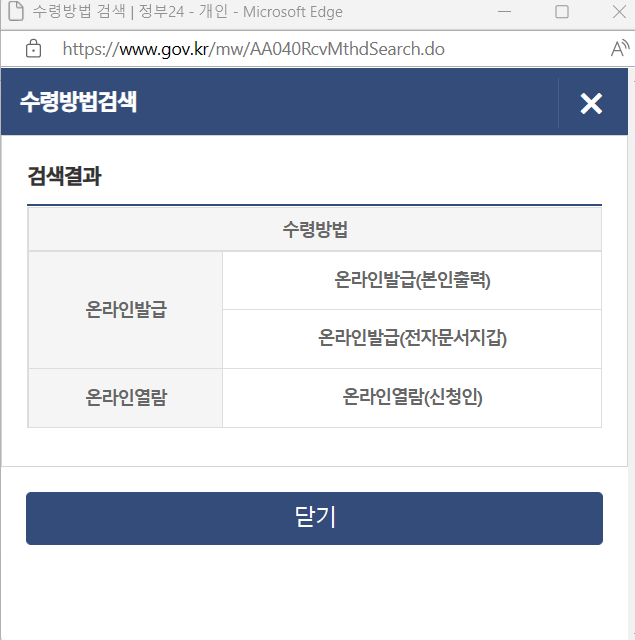 신청내용 수령방법