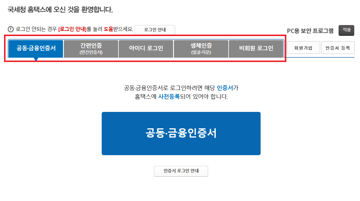 홈텍스 본인인증