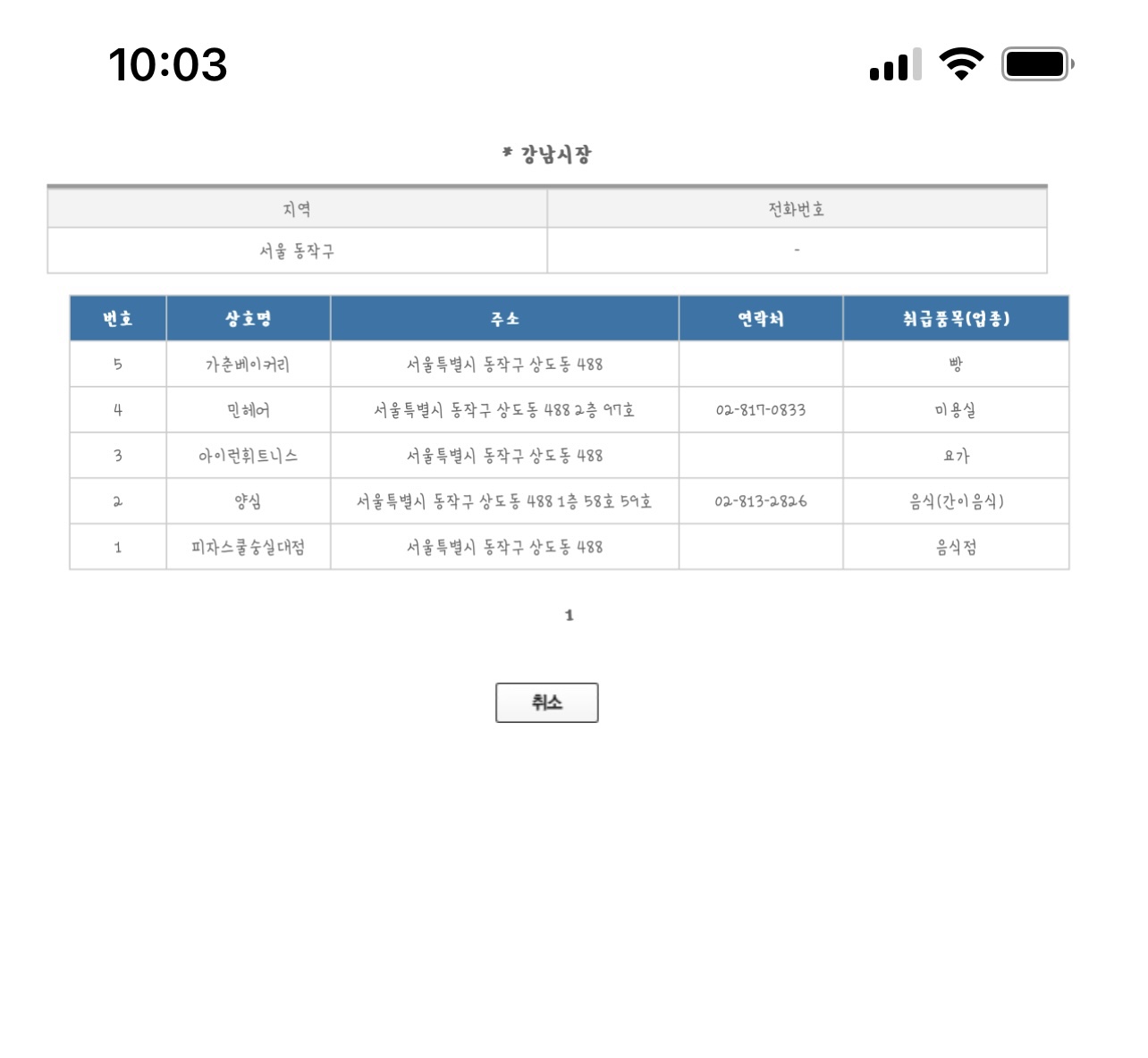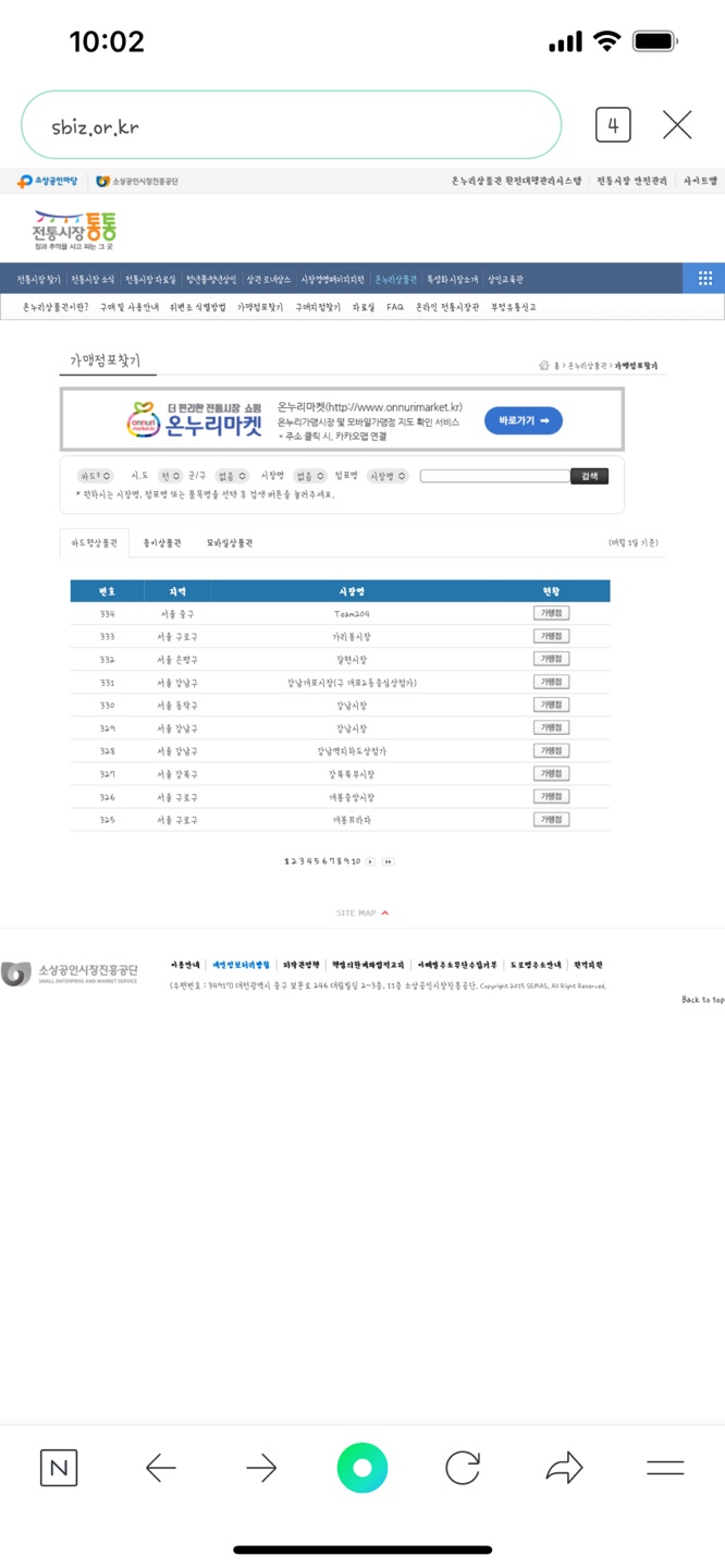온누리 마켓에 들어간 후 지역을 선택하여 검색하면 해당 지역에서 사용할 수 있는 전통시장이 모두 검색됩니다.