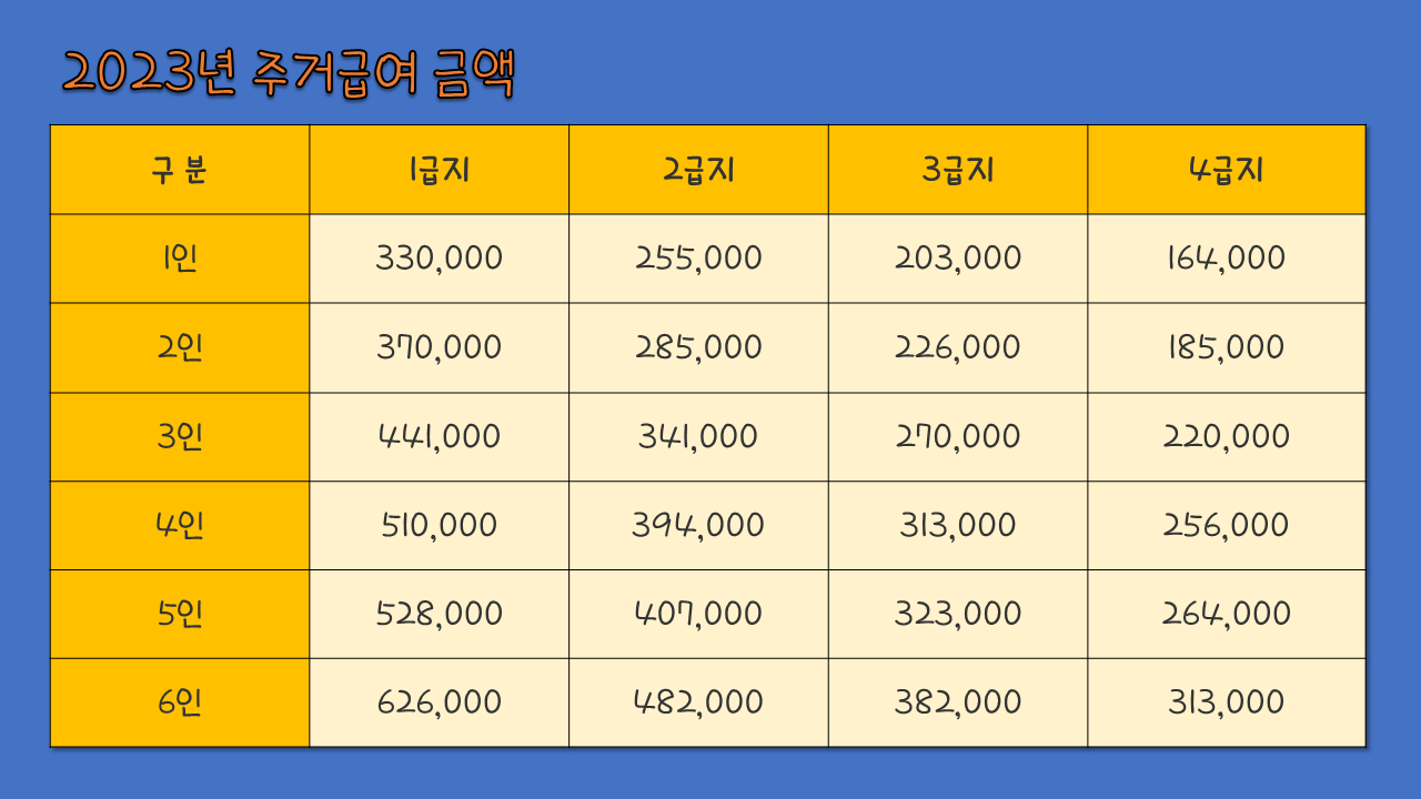 2023년 주거급여 지원 금액