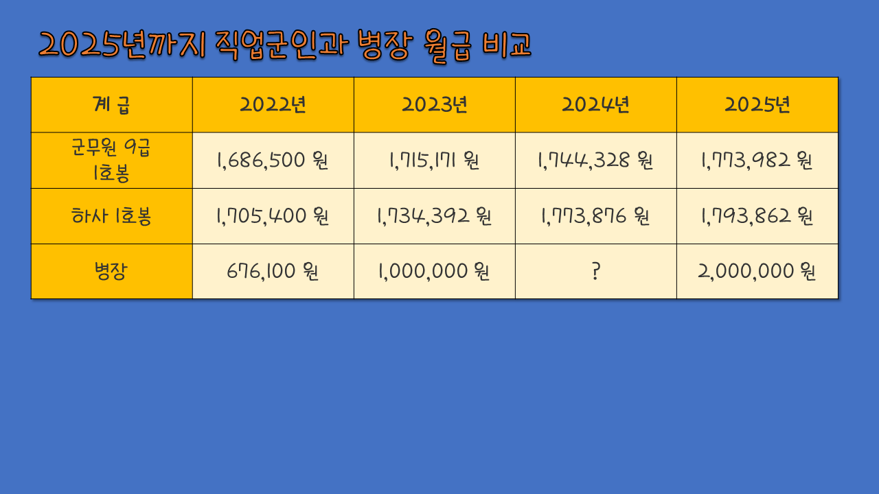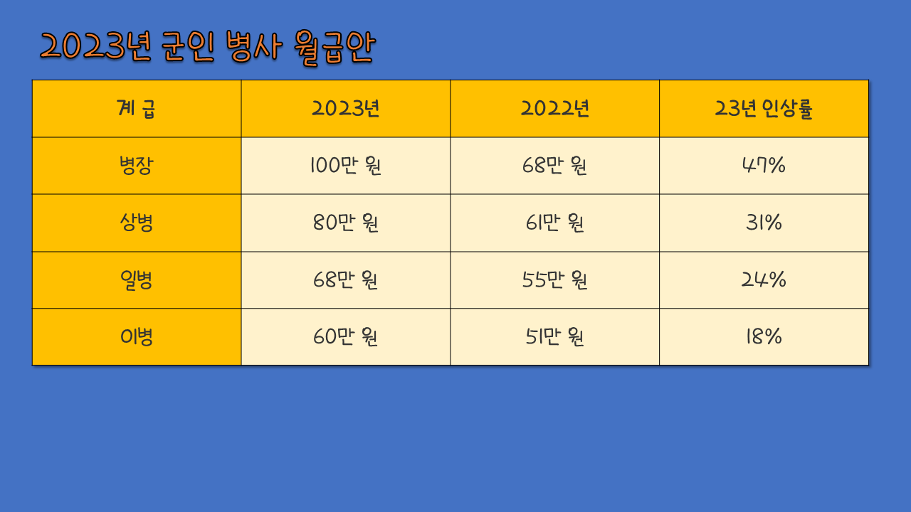 2023년 병사 봉급이 아주 파격적으로 인상될 것으로 결정되었는데요. 그에 따라 2023년 군인 월급과 군무원 월급에는 어떤 영향을 미칠지 알아보도록 하겠습니다.
