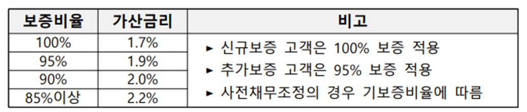 만약에 CD 금리가 3.5%이면 시가 1.75% 금리를 보전해 CD 금리(3.5%)+가산금리(1.7%, 100% 보증)–1.75% = 3.45%(고객 부담금리)가 되고, 소상공인 실부담금시는 3.45%까지 낮아집니다. CD 금리가 5.0%이면 시가 2.75% 금리를 보전해 실 부담금리는 3.95%가 됩니다.