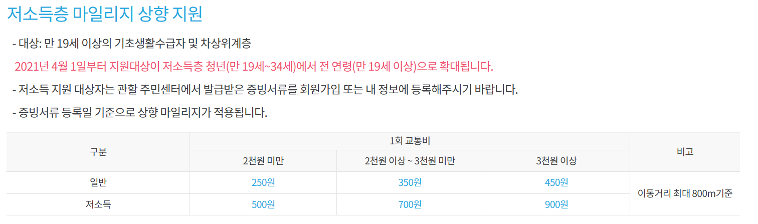 월 15회 이상 알뜰교통카드로 대중교통 이용하여야 하고 주민등록상 주소지 확인되어야 마일리지가 지급되는데요. 알뜰교통카드 앱 가입 첫 달은 대중교통 이용횟수와 무관하게 적립됩니다.