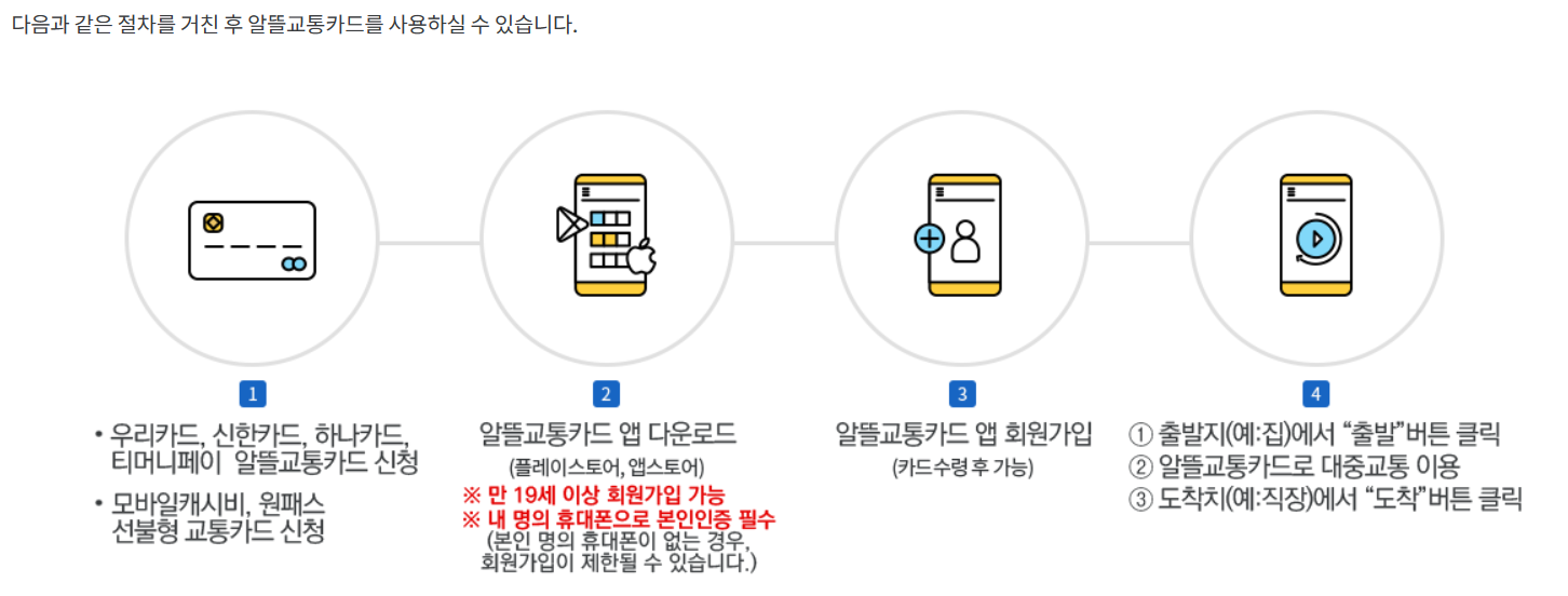 - 알뜰교통카드 앱은 만 19세 이상 회원가입 가능합니다.