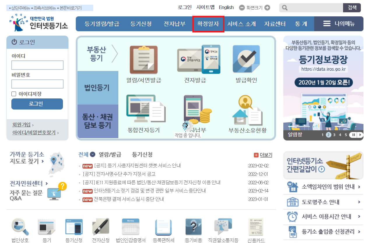대법원 인터넷등기소 확정일자 받는 법