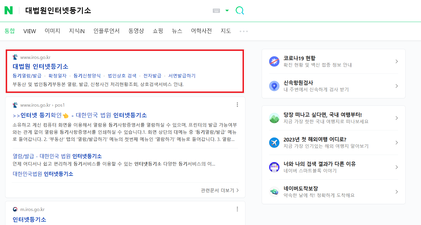 두 번째 방법은 대법원 인터넷등기소에서 받는 방법입니다.