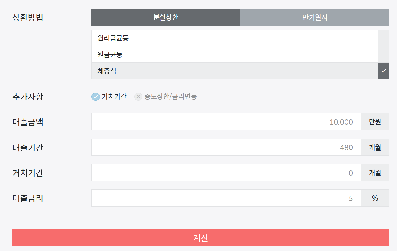 계산식은 사실 매우 복잡하여 손으로 직접 계산하는 것보다 계산기를 사용하는 것이 훨씬 효율적이므로 계산기를 사용해보도록 하겠습니다.