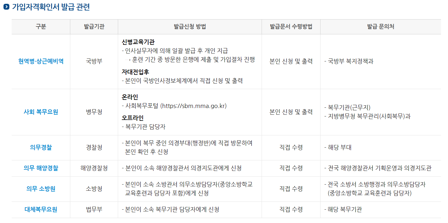 - 대체 복무요원은 복무 기관 담당자에게 신청해서 발급