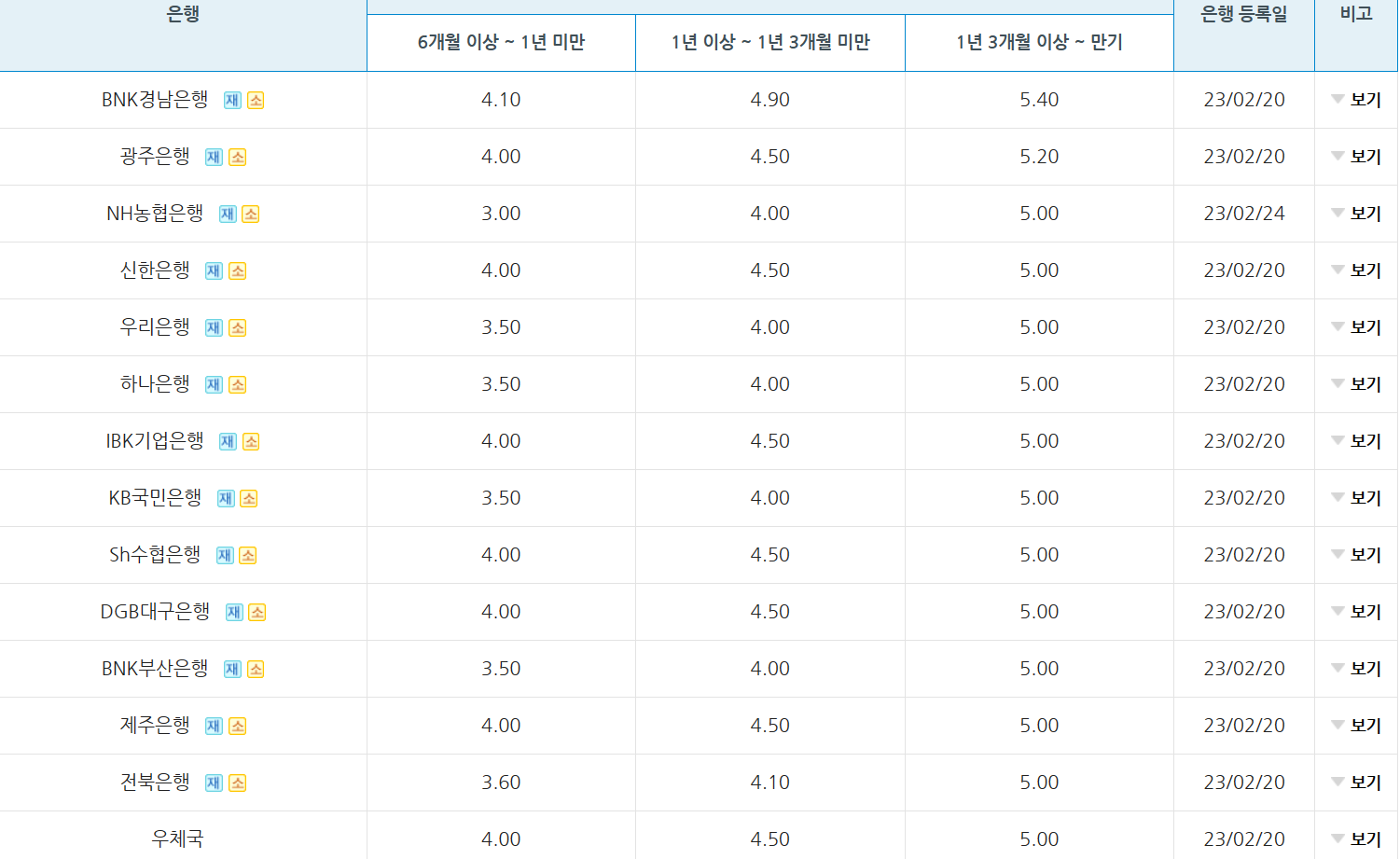 은행별 금리비교