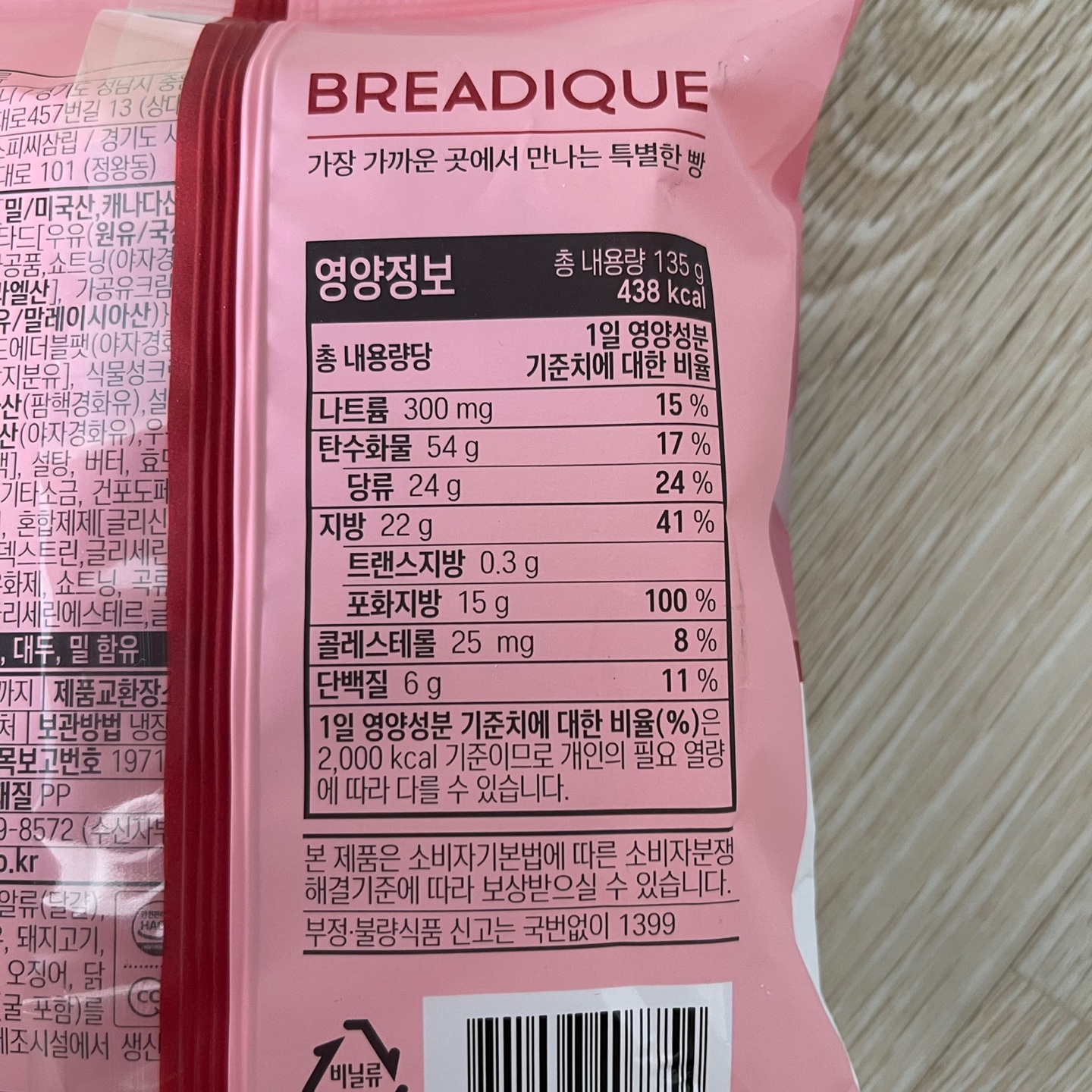 총 내용량 135g에 438kcal네요😅