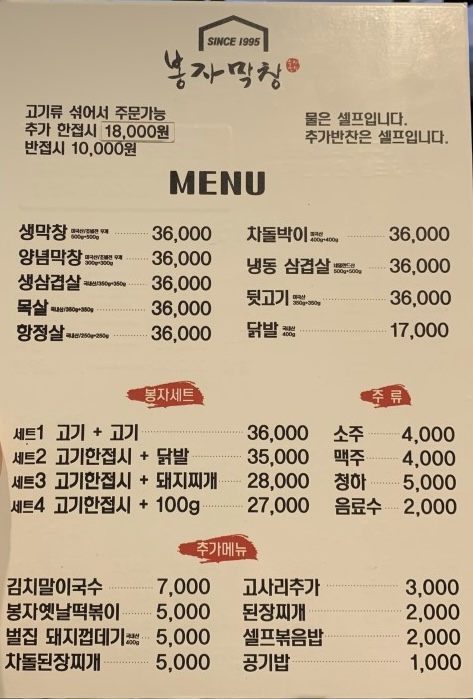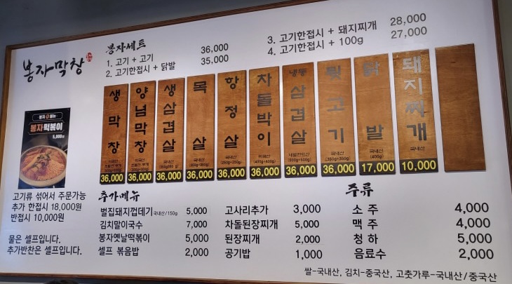 봉자막창은 막창뿐만 아니라 다양한 고기들을 판매하고 있는데요!!! 가성비가 진짜 짱이예요!!!