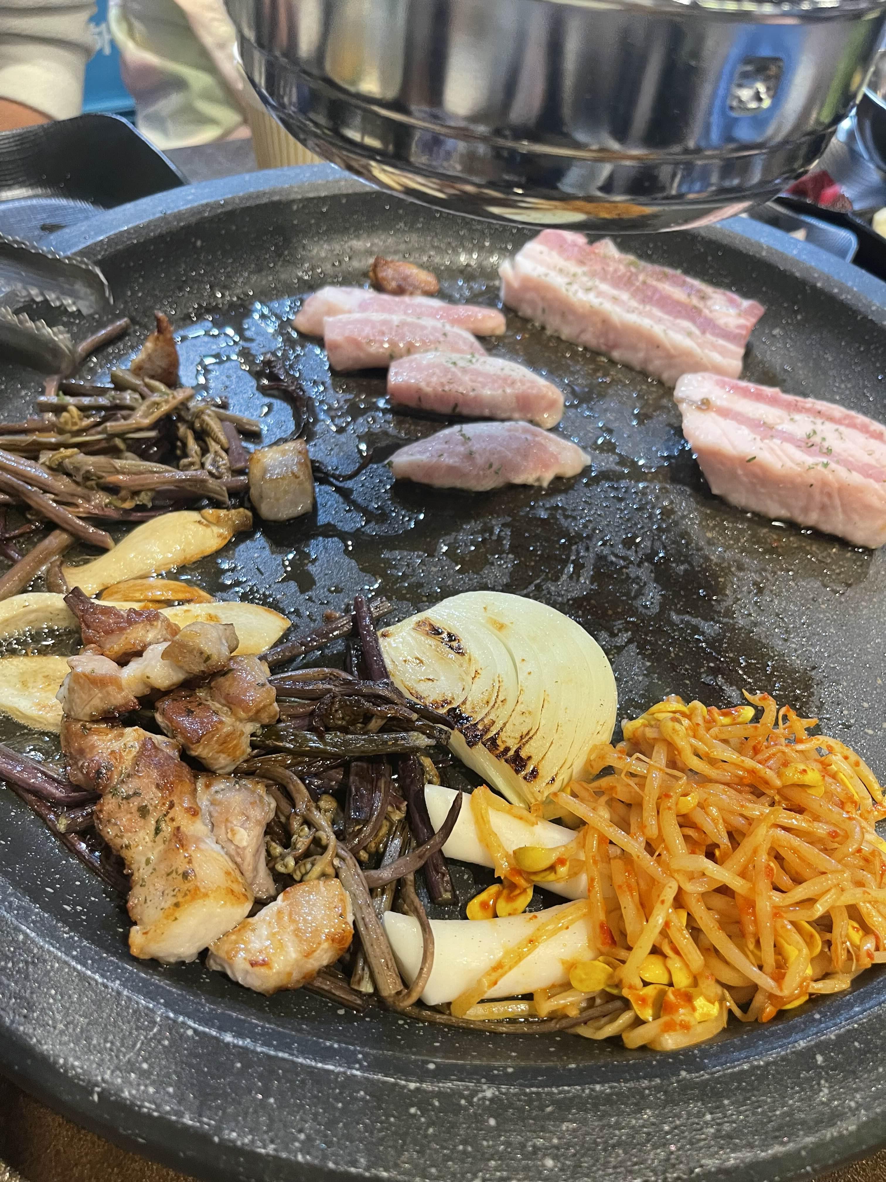 전 삼겹살이랑 고사리 함께 구워먹는거 정말 좋아하는데요!! 일단 고사리의 딱 맞는 간까지 합격!!!! 콩나물과 버섯 떡까지 모두 구워봅니다!!!
