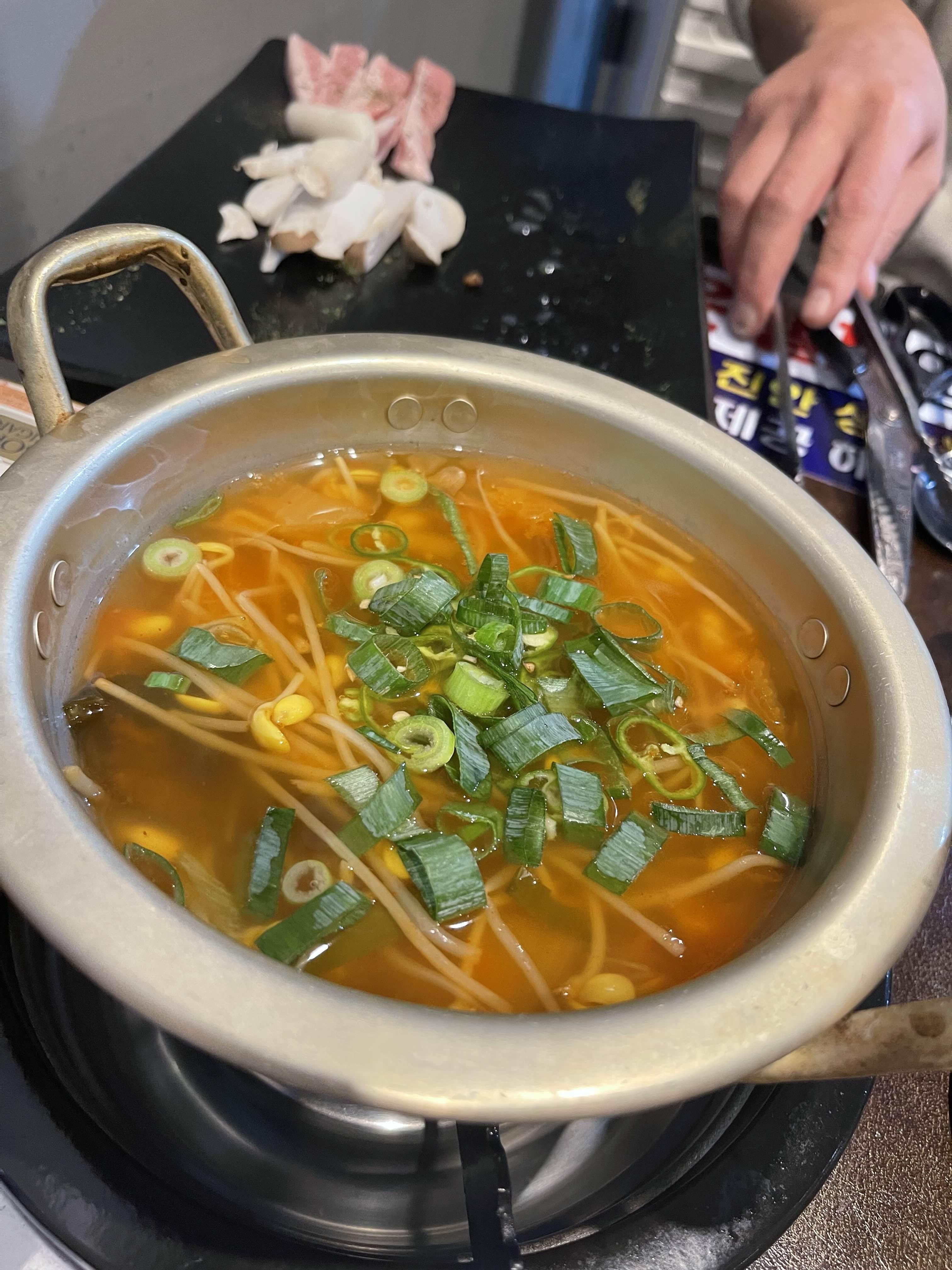 보글보글 김치콩나물국도 맛있게 끓여주도록 하구요!!! 매콤한 콩나물국에 소주 한잔도 캬~~ 잘 어울리구요. 돼지고기의 맛을 더 맛있게 해줍니다.