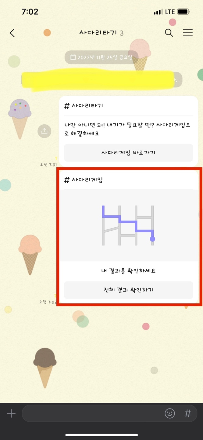 오늘은 카카오톡에서 사다리타기하는 방법에 대해서 알려드리려고 합니다.