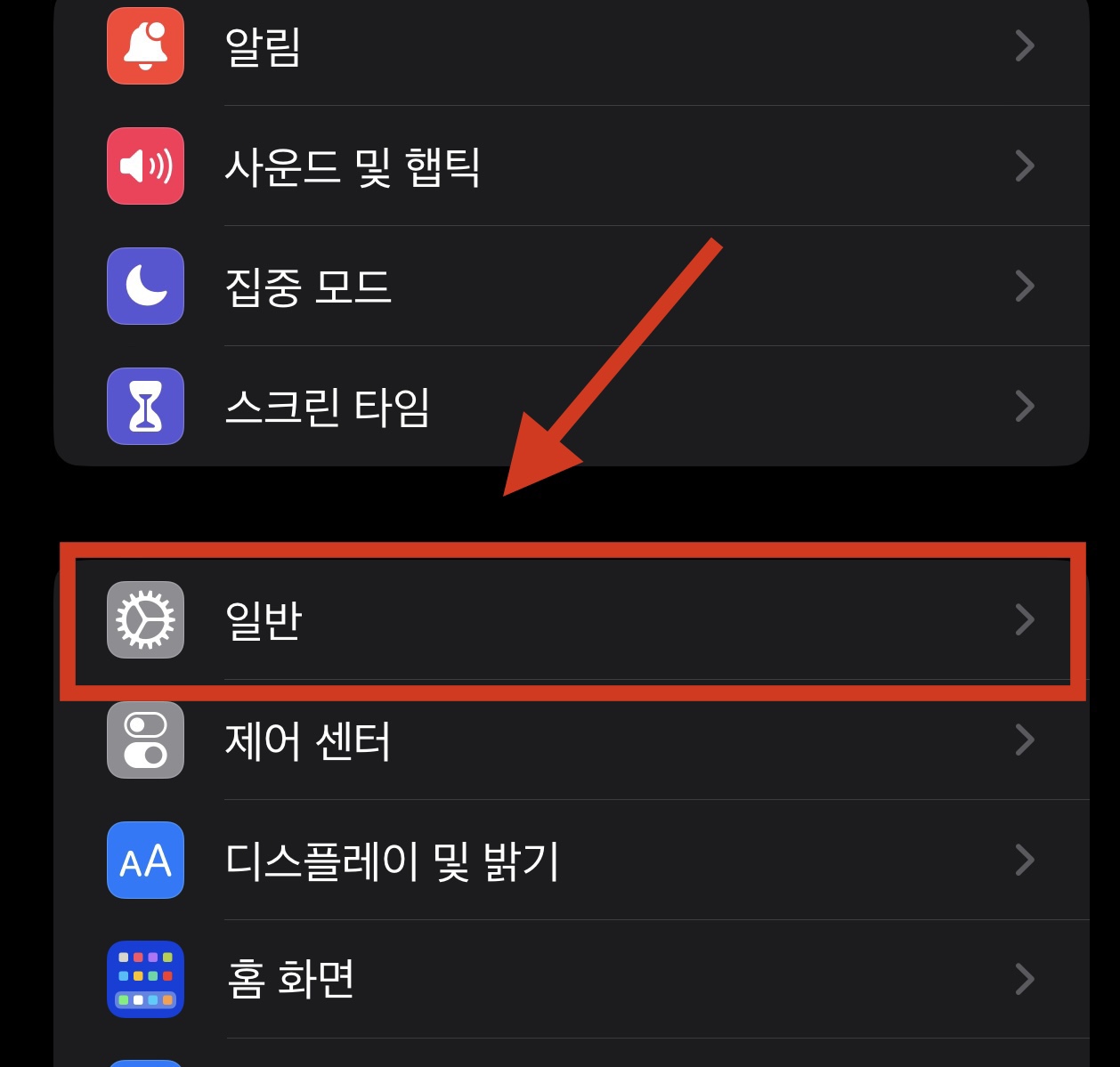 그리고 설정에 들어갔으면 <일반>을 선택해 주세요.