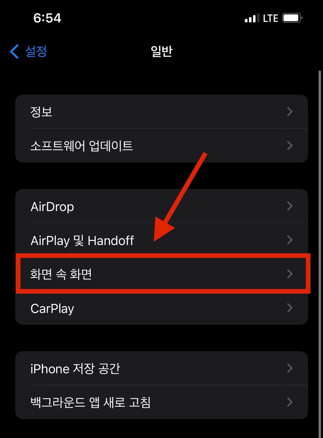 여러 가지 메뉴 중에서 <화면 속 화면>을 선택해주세요!!