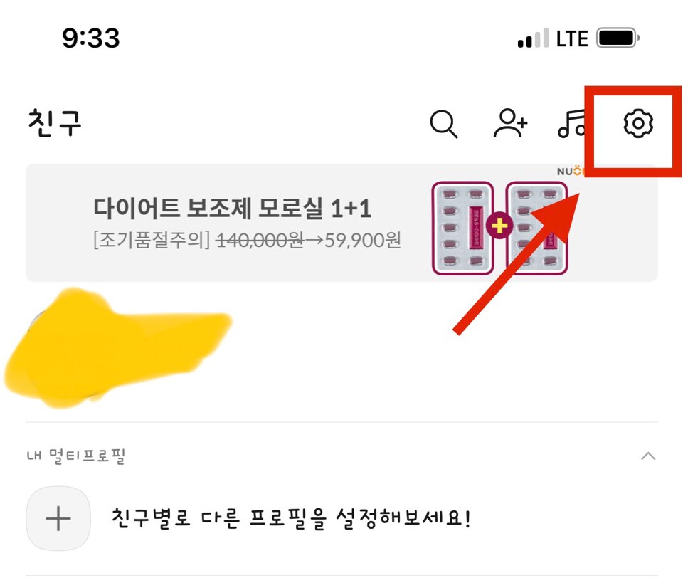 일단 카카오톡에 접속해 사람 모양 아이콘을 누르고 친구 목록으로 들어갑니다. 오른쪽 상단에 있는 톱니바퀴 모양을 눌러주세요!!