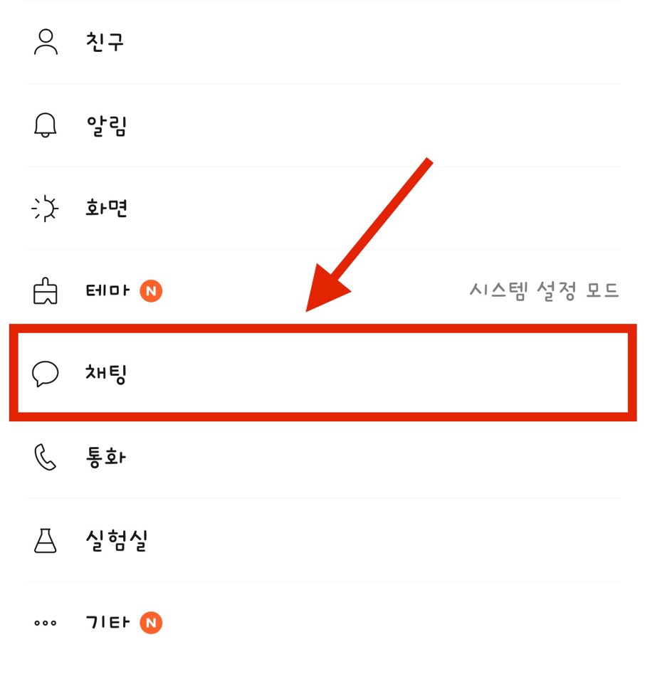 다양한 메뉴 중에 <채팅>을 선택해 주시고