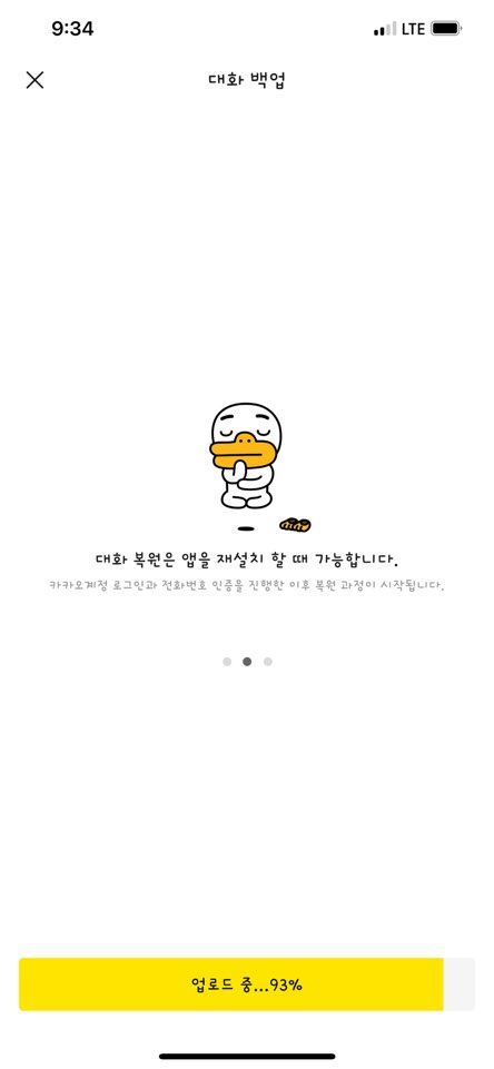 귀여운 이모티콘과 함께 대화 백업 중임을 알려주면서 간단한 설명이 나오죠.